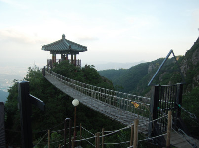 이번에 소개해드릴 곳은 "금오산"입니다. 금오산은 높이가 977m인 산인데요 주봉인현월봉과 약사봉,영남8경 중의 하나인 보봉이 소백산맥 지맥에 솟아 있으며, 시생대와 원생대에 속하는화강편마암과 하강암이 주를 이루고 있다고 합니다. 자 그럼 함께 가보실 까요~ 금오산을 입산하기 위해 주차장으로 가는중^^한컷 찍었어요 날씨가 좋아서 너무 이쁘게 나왔네요 안내센터를 지나면 요렇게 평탄한 길이 나타납니다.아직까진 아주 여유롭네요^^ 드디어 시작인가요? 이제부터 계단!!!벌써부터 다리가 후덜덜 하는듯 합니다. ㅋㅋ 계단을 오르며 누군가가 쌓은 돌탑을 보네요...과연 무슨생각을 하면서 저많은 돌들을 쌓아 올렸을까요? ......계단도 없는길이 .....드디어 진정 시작인것인가... 헉헉....대 혜...문...이제다온건가?? 네 다 왔습니다. 폭포에 ㅡ,.ㅡ 아...폭포... 케이블카 타야 했던 걸까요??...벌써 체력이...바닥이에요 ㅠㅠ 저기 뒤로 폭포가 보이네요^^ 아~~~시원하다~~ 캬~~ 폭포는 언제봐도 멋있네요 너무 힘들어서 좀 쉬기로 하고 목도 축이고 ^^ 좀 쉬었네요 이제 힘내서 한번 출발해볼까요?? 흠...근데 다음코스 뭔가 이름이 장난이 아닙니다... 할딱고개....저 경사를 보세요...ㄷㄷㄷ 뜨하.... 엄청나네요...왜 할딱고개인지를 알것같아요... 주변을 둘러보며 다시 올라가기 시작합니다. 오홋 야생화가 피어있네요.. 무슨꽃이지?아무튼 예쁜꽃을 뒤로 하고 하염없이 올라갑니다. 헉헉 너무힘들다....그냥 포기할까...라는 순간 하산하시는 등산객을 발견 나 : "저기 죄송한데 정상까지 멀었나요??" 등산객 : "아뇨 이제다왔어요 조기 앞이에요" 나 : 정말요? 우와 감사합니다~~ ㅡ,.ㅡ 한시간...그렇게 한시간 조기~ 앞이라던 정상은.... 아직인가보다... 헉헉 너무힘들다... 목도마르다... 하지만... 물이없다... ㅠㅠ그런데 그순간 눈앞에 돌무더기가...앞에 있더라구요??뭐지? 하고봤더니 그..금오산성....좀 부셔졌나봐요... 근데 너무너무 목이말라서... 그냥 옆 졸졸흐르는 냇물을 ...꿀꺽꿀꺽 오홋 완죤 시원해~~~~ 열심히 오르다보니 이젠정말 고지가 앞이네요^^ 두둥!! 드디어!!!!!!!!!!!!!!!!!!!!!!!! ㅡ,.ㅡ 헬기장..... 뭐.... 뭐지... 아하 조금 더 가야되는거네요^^ 드뎌~~ 금오산 정상입니다.!!! 우와... 눈물나려해... ㅠㅠ 촬영날이 와이프 생일인지라... 바로 영상통화 해서 내가 널위해 올라왔어~~!! 와이프왈"구라치시네 뚝... 뚜.. 뚜... 뚜..." ㅡ,.ㅡ 뭐 뭐지..... 옆에 있던 아주머니 제가 불쌍했던지 왕만두 하나주시네요...ㅠㅠ 아 슬픈데 맛있다... 하산하려니 해가 지네요.... 내려가면서 한번 굴렀습니다. 어두운탓에 혹시나 좀 늦었다싶으면 후레쉬 하나 꼭 챙기세요 전... 등산을 즐기지않는편이라.. 아무것도 모르고 올라갔다가 영광의 상처를 남겼습니다~~