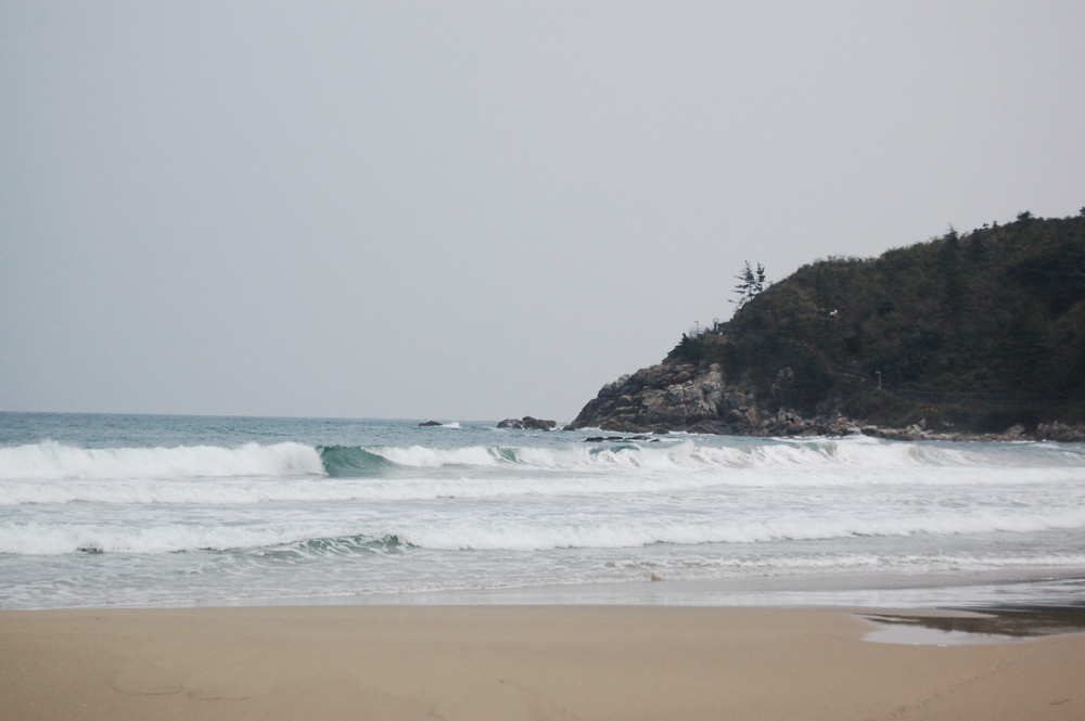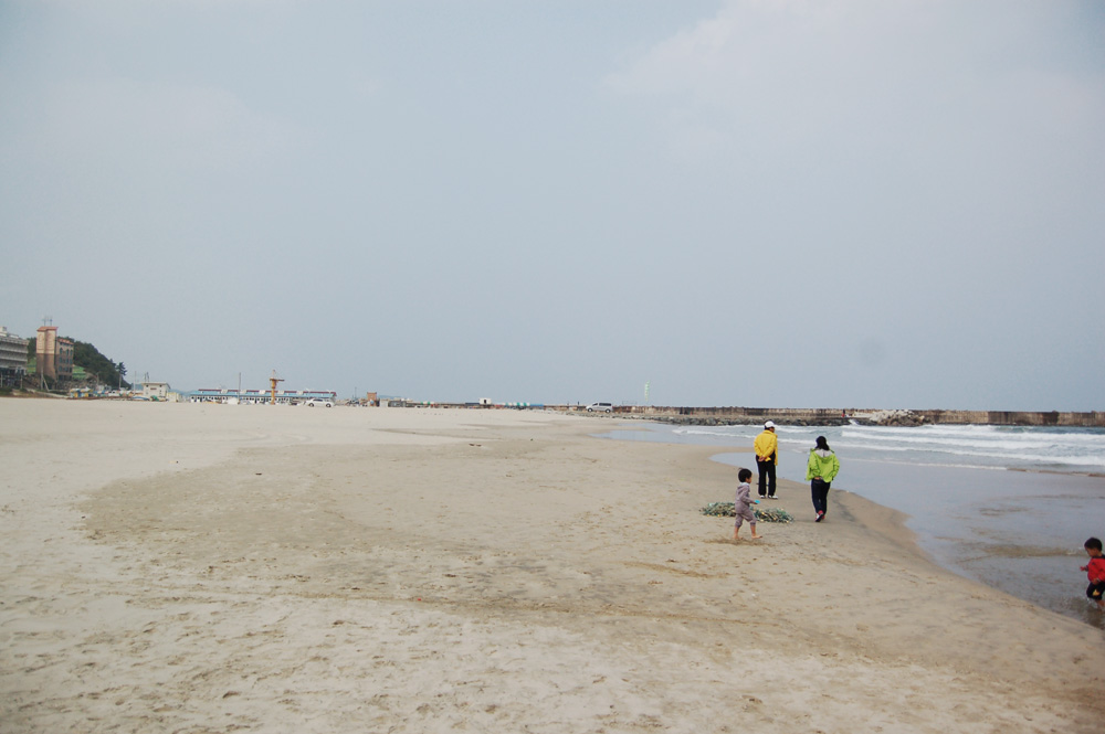 길이1km 폭80m의 여느 동해 해수욕장에 비해 수심이 얕고 조용한 해수욕장