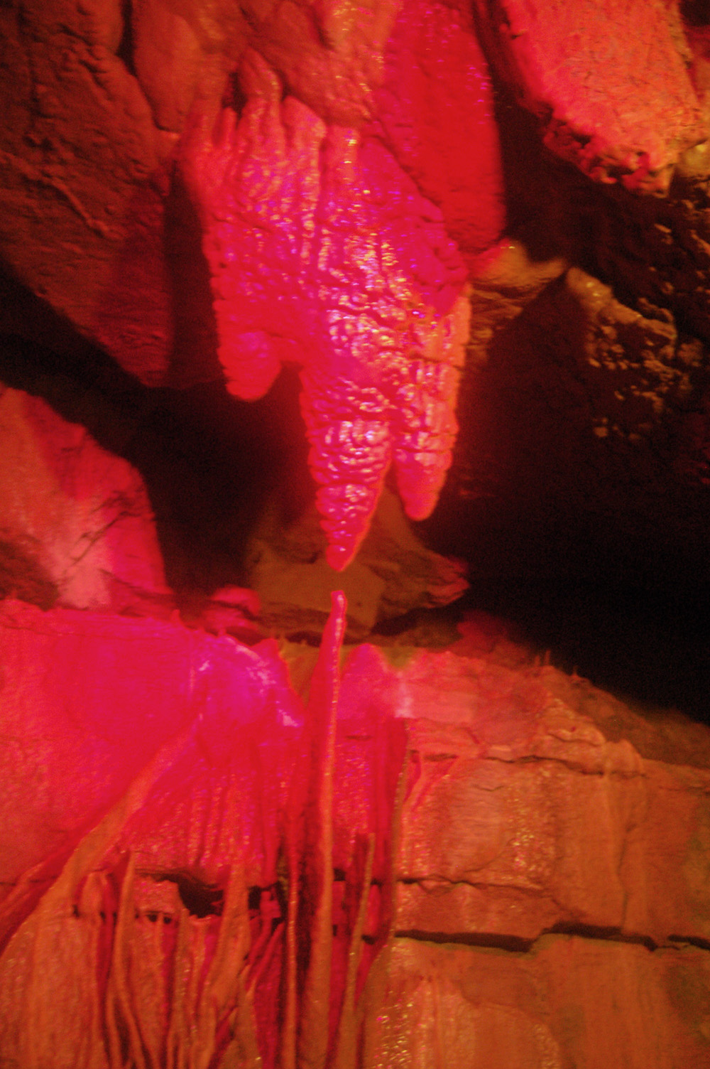희귀한 모양의 종류석,석회 화단구, 종유폭포 등이