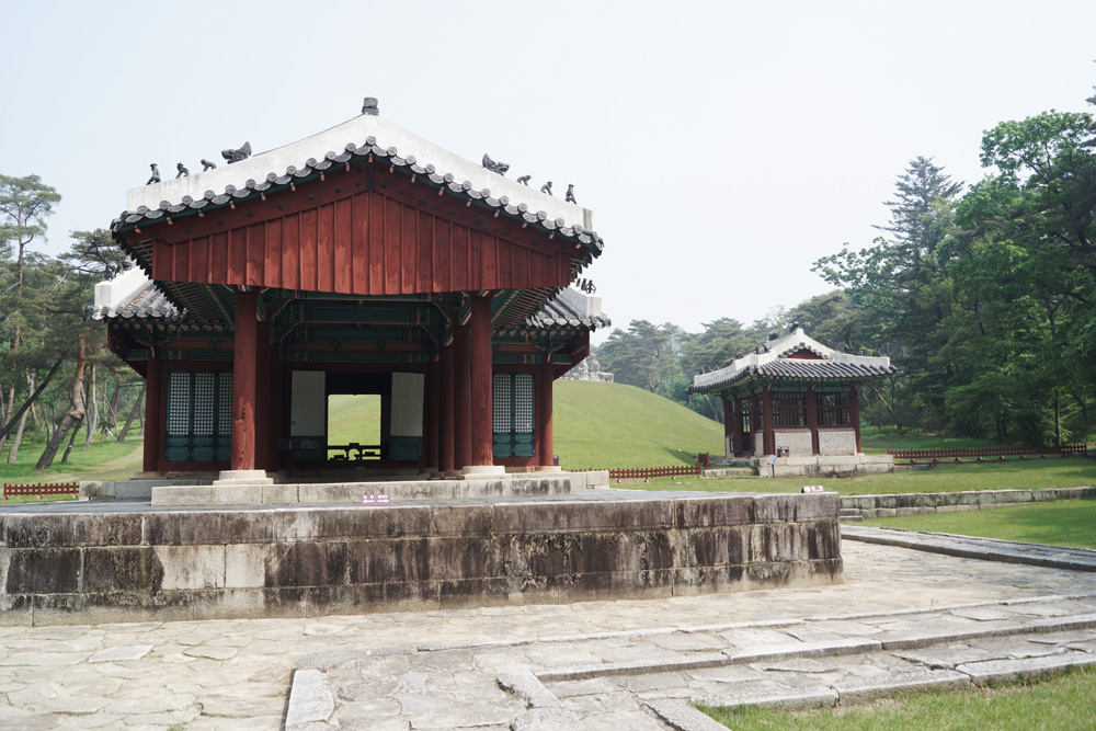 조선17대 효종과 왕비 인선왕후 장씨가 모셔진 쌍릉.주변에 푸른 소나무들이 울창하여 그윽함을 풍기지만 세종릉과 바로 붙어 있어 찾는이가 적어 사방이 조용하고 호젓하다