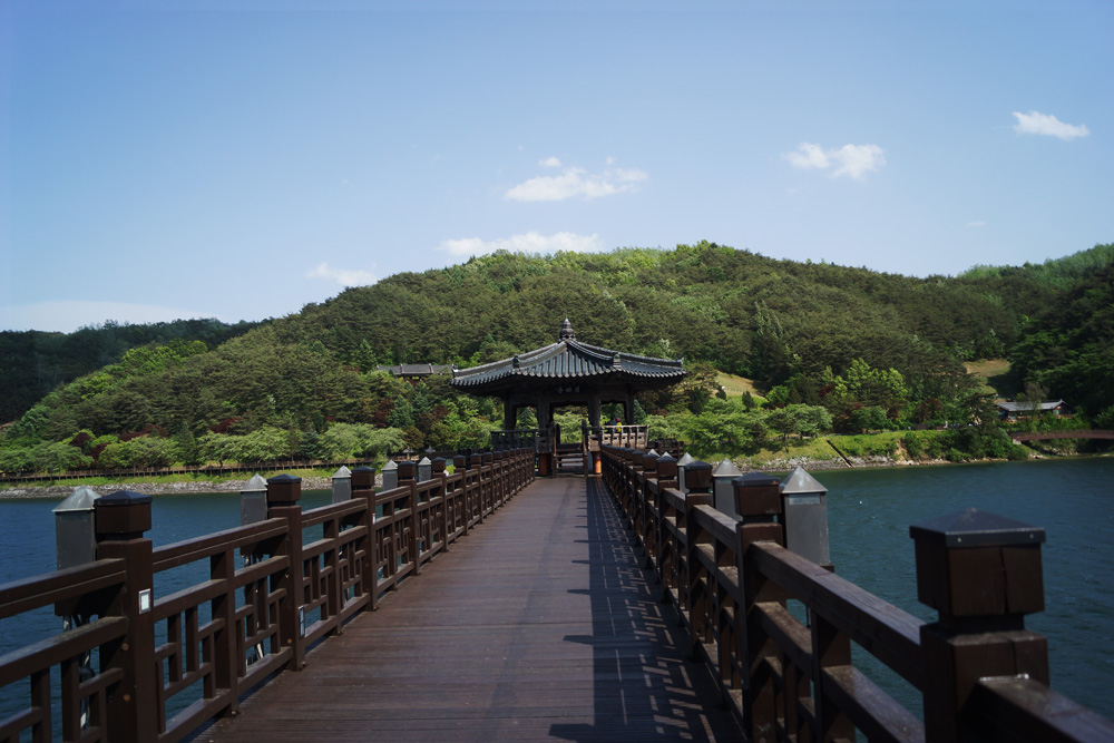 한 부부의 아름답고 숭고한 사랑이 간직되어 있는 나무다리이다. 먼저 간 남편을 위해 머리카락을 뽑아 한 켤레의 미투리를 지은 지어미의 애절하고 숭고한 사랑을 기념하고자 미투리 모양을 담아 다리를 지었다고 한다. 2003년 개통되었으며 길이 387m, 너비 3.6m로 국내에서는 가장 긴 목책 인도교이다. 다리 한가운데에는 월영정()이 있다.