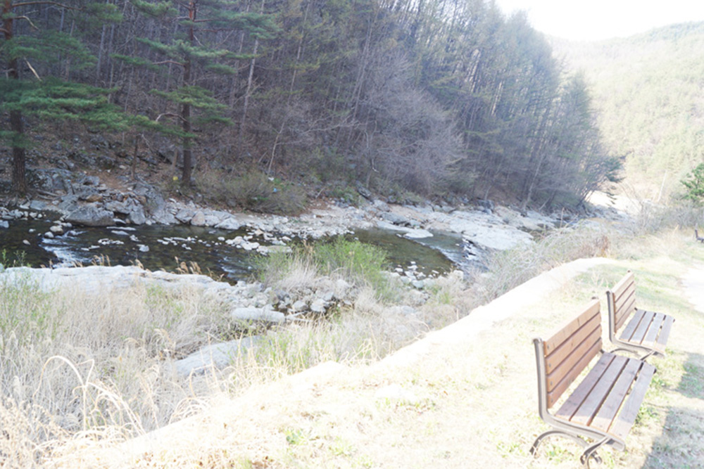 계곡 옆으로 이렇게 앉아서 쉴 수 있는 벤치도 있어요~