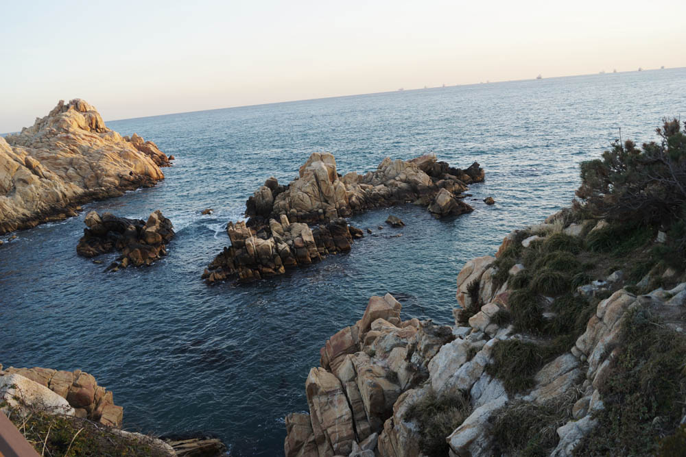 송림을 벗어나면 탁 트인 바다와 거대한 바위덩어리들이