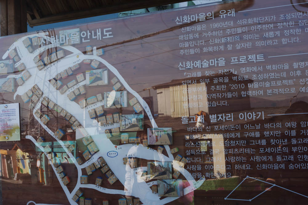 신화마을은 1960년대에 울산공단의 형성으로 삶의 터전을 잃은 사람들을 위해 만들어진 공단 이주민촌이다. 신화라는 이름은 새롭게 화합하여 잘 살자는 의미를 담고 있어 당시의 정서를 느끼게 한다.