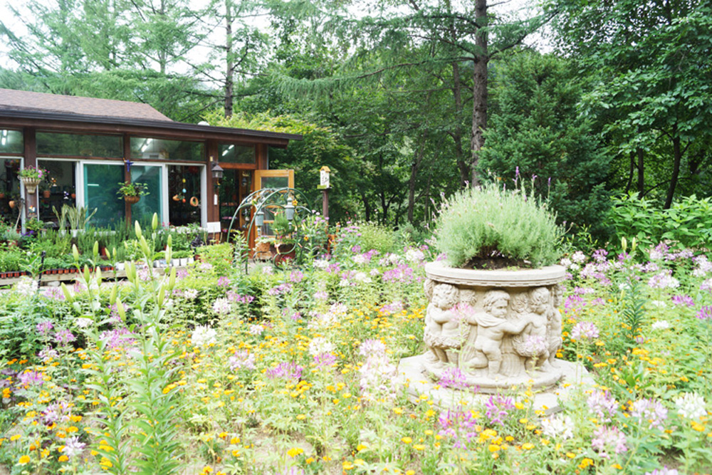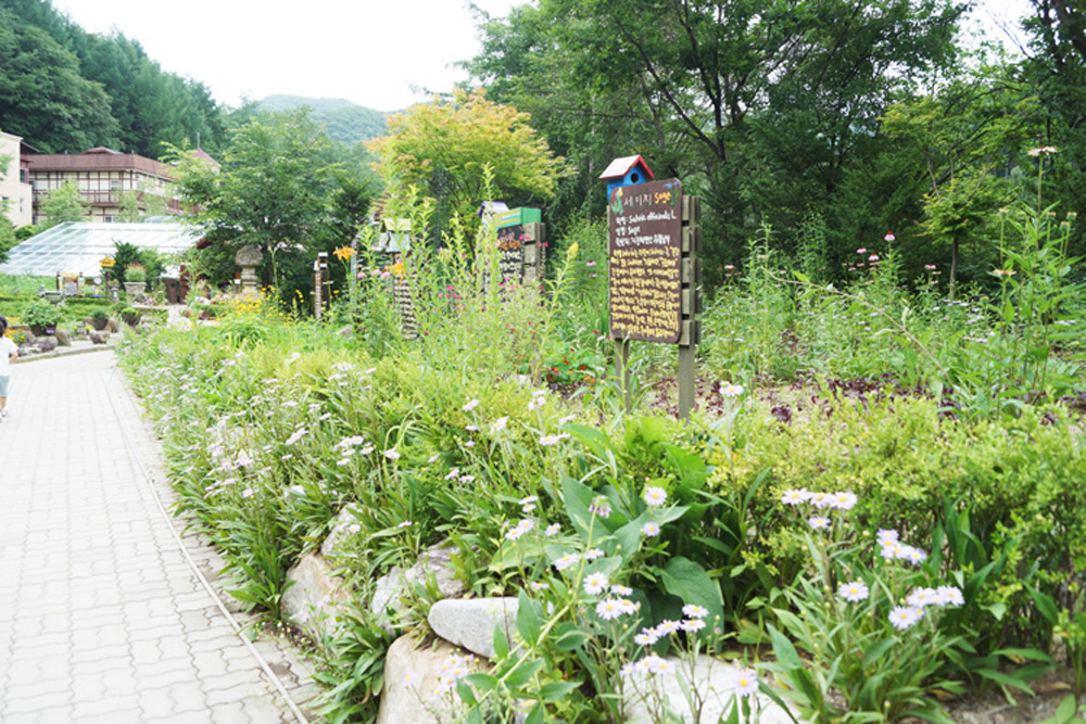 흥정계곡을 끼고 있는 허브나라는 각종 허브와 허브음식,