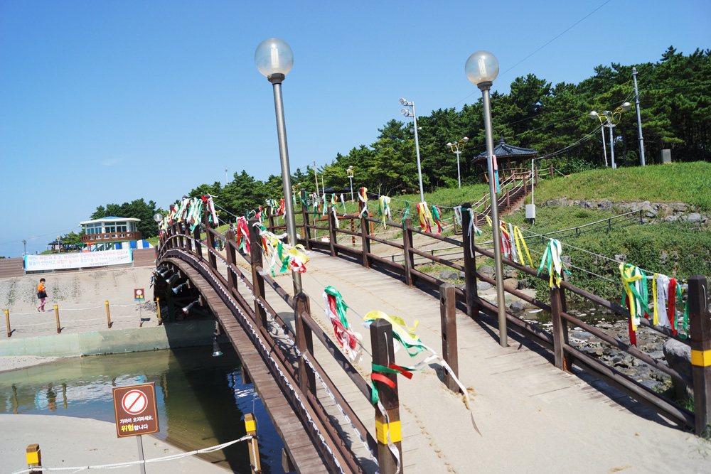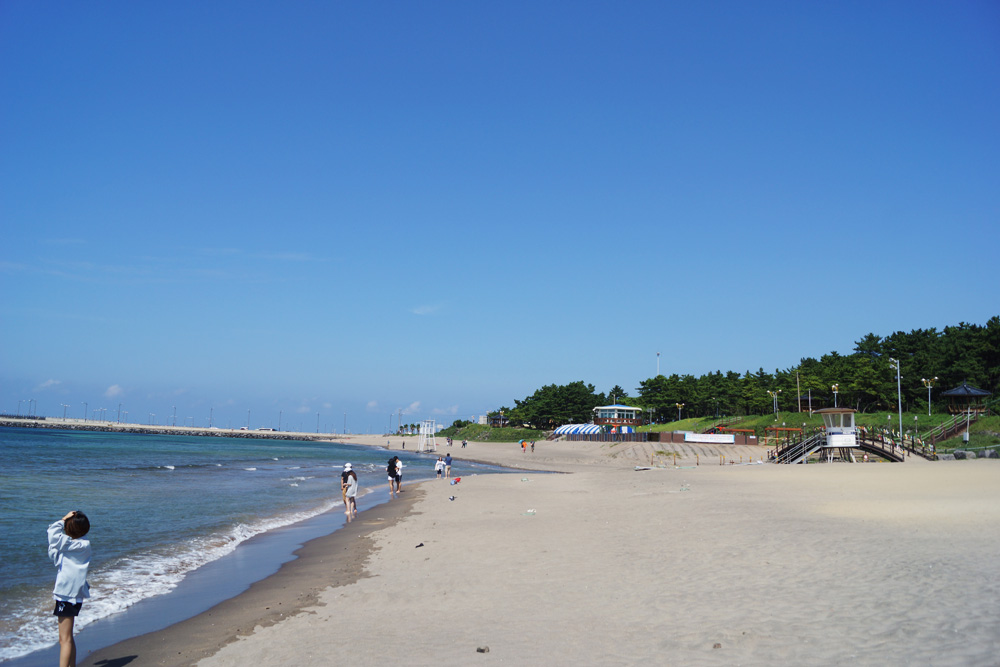 백사장의 경사가 완만하여 많은 피서객들이 찾으며
