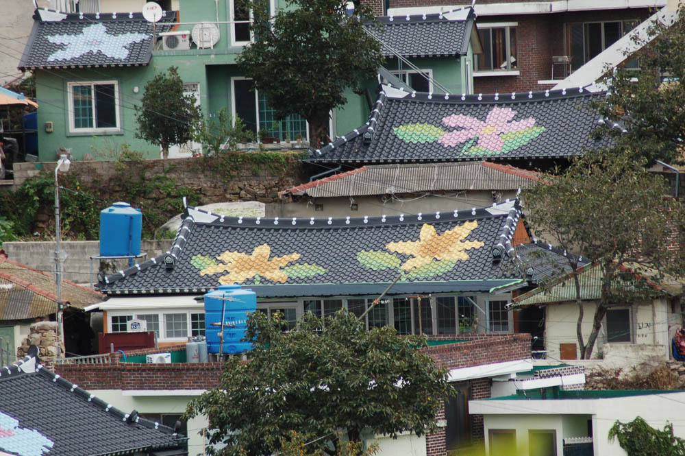 지붕위로 저렇게 이쁜 꽃들을 그려놓았네요~