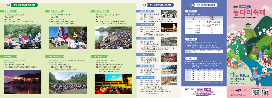 - 충청북도 지방유형문화재 제28호로 천년을 이어온 동양 최고의 돌다리, 놀랍게도 생김새가 다른 돌이 어우러져 천년의 세월을 이겨낸 농다리를 테마로 개최하는 축제이다. 살아서 농사 짓기 위해 건너고 죽어서는 꽃상여에 실려 건너는 사람과 공존하는 다리, 바로 진천 농다리이다.