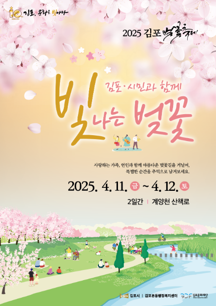 - 김포 벚꽃축제는 김포 대표 벚꽃 명소 '계양천' 일원에서 개최하는 축제이다.