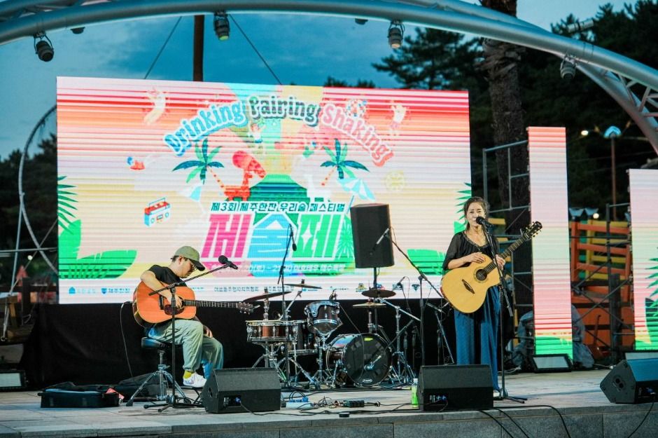‘2025 제주한잔 우리술 페스티벌(제4회 제술페)’는 제주 이호테우해수욕장에서 개최되는 제주 전통주 중심의 여름축제이다. 국내 유일의 제주 전통 양조장을 중심으로 구성된 주류 페스티벌로, 40여 종의 제주산 전통주를 잔술로 즐길 수 있으며, 제주산 증류소주를 활용한 칵테일과 하이볼, 지역 식재료 기반 안주를 함께 제공한다. 행사장은 전통주 및 로컬 수제맥주 존, 하이볼 바, 미식 페어링존, 아트·굿즈 체험존, 공연존, 친환경 세척존 등으로 구성되며, 무알콜 음료와 막걸리 만들기 체험, 블라인드 시음 퀴즈 등 다양한 참여형 프로그램이 마련되어 있다. 재즈 공연과 전통주칵테일대회, 칵테일쇼 등 다양한 퍼포먼스가 이호테우 저녁바다를 배경으로 펼쳐져 제주 여름 해변의 감성을 더한다. 친환경 운영 원칙에 따라 다회용기와 다회용컵을 사용하며, 관람객이 직접 컵을 세척할 수 있는 공간이 마련된다.