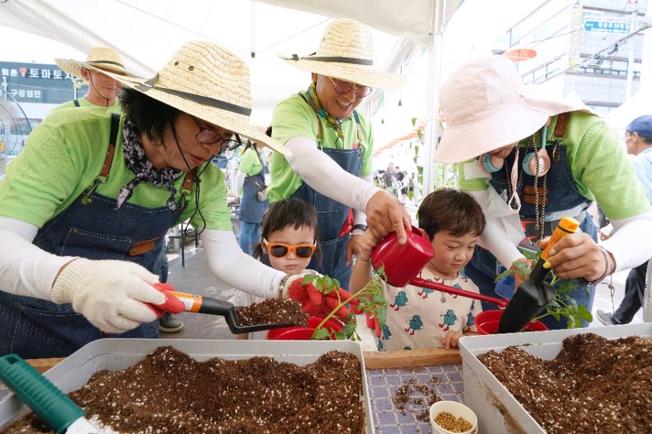이외에도 토마토 높이 쌓기, 토마토 몸무게 맞히기, 토마토 화분 만들기 등 다채로운 체험 프로그램이 즐비하다.