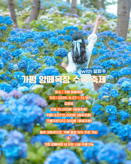 가평의 아름다운 자연 속에서 펼쳐지는 본 축제는, 활짝 핀 가을 수국의 물결과 사랑스러운 알파카들을 한자리에서 만날 수 있다. 가을의 정취를 가득 담은 수국밭을 거닐며 싱그러움을 만끽하고, 순수하고 귀여운 알파카들에게 직접 먹이를 주거나 함께 사진을 찍으며 잊지 못할 추억을 만들 수 있다. 단순히 꽃과 동물을 감상하는 것을 넘어, 방문객들이 직접 참여하고 즐길 수 있는 다채로운 프로그램들이 마련되어 있다. 수국밭 속 양떼목장에서는 동물들에게 먹이를 주는