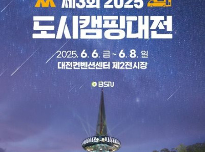 캠핑박람회와 캠핑축제를 동시에 즐길 수 있는 2025 도시캠핑대전이 올해로 제 3회를 맞이하고 있다. 대전컨벤션센터 제 2전시장에서 열리는 박람회는 더 많은 업체가 참여하여 캠핑의 최신 트랜드와 캠핑용품들을 한눈에 볼 수 있고, 한빛광장에서는 다채로운 캠핑관련 행사 및 먹거리도 만나 볼 수 있다. 특히, 6월 6~8일간 개최되는 본 축제기간 이전에 5월 30일부터 한빛광장에서 진행되는 "도시캠핑대전맥주축제 캠펍"에서는 캠핑 먹거리, 캠핑체험 등을 미리 경험할 수 있다.