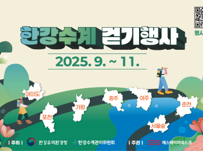 2024년에 이어 더 다양한 지역에서 한강과 깊이 연결되는 걷기행사가 서울 여의도, 경기 포천, 경기 가평, 충북 충주, 경기 여주, 강원 춘천, 서울숲 등 한강수계의 주요 거점에서 진행된다. 걷기 행사 참여자에게는 푸짐한 기념품과 완보 메달이 제공되고, 각 지역별 코스마다 그곳의 자연과 어우러진 특화 프로그램도 포함되어 있어 다양한 문화체험과 생태적 가치를 직접 경험할 수 있다. 그리고 참여자는 한강수계원정대로서 활동하게 된다. 한강수계원정대는 각 지역의 한강 물길을 따라 걸으며 풍요로운 가을의 분위기를 만끽하고, 한강이 품은 생태적 가치와 그 소중함을 사진과 영상으로 기록해 SNS를 통해 널리 알리는 임무를 부여받는다. 이는 한강의 아름다움을 확산시키고, 자연을 향한 사회적 관심을 일으키는 또 하나의 실천으로 한강과 함께 지속가능한 미래를 위한 발걸음에 동참할 수 있는 소중한 시간이 될 것이다. 이번 걷기행사는 단순한 이동이 아닌, 자연과 공감하고 행동으로 이어지는 지속가능한 여정이다. 한강의 숨결을 따라 걸으며, 강이 전하는 메시지에 귀를 기울이고 미래를 위한 발걸음을 내딛는 모두의 참여를 기다린다.