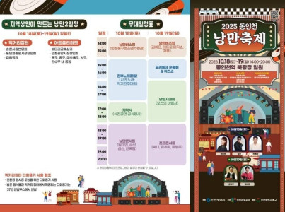 동인천 낭만축제는 동인천역 북광장에서 열리는 지역 축제이다. 동인천 낭만축제는 2025년 10월 18일부터 10월 19일까지 이틀간 진행된다. 이번 축제는 동인천의 과거 번성기를 재조명하고 지역 상권 활성화를 목표로 기획되었다. 낭만축제는 ‘낭만’을 주제로, 과거 동인천 지역의 문화와 상업적 번영을 재현하는 다양한 프로그램과 이벤트로 구성된다. 10월 18일과 19일 양일간 송현시장, 중앙시장, 배다리공예시장을 비롯한 인근 전통시장 상인들이 참여하여 먹거리와 공예품을 판매하는 ‘낭만 2일장’, 지역 예술인, 청소년 등이 무대 공연을 펼치는 '낭만버스킹'이 진행된다. 18일에는 원미연, 금산, 심신, 천록담이 출연하는 ‘낭만콘서트’, 19일에는 써니, 김세환, 윤형주가 출여하는 '포크콘서트'가 예정되어 있다. 이외에도 미림극장과의 협업을 통해 추억의 영화를 감상할 수 있는 '낭만시네마', 시민참여형 프로그램인 '노래·악기경연대회', '우리동네 운동회&퀴즈쇼' 등 다채로운 콘텐츠가 준비되어 있다.