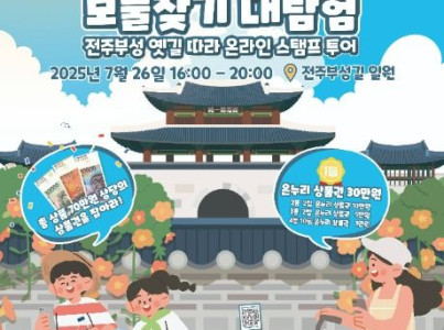 전주부성길에 숨겨진 보물을 찾아라! 오는 7월 26일, '여름방학 특집'으로 진행되는 '전주부성길 보물찾기 대탐험'은 500여 년간 호남의 중심지, 전주를 지켜온 성곽인 전주 부성길이 있던 길을 배경으로 펼쳐지는 모바일 스탬프 투어이다. 참가자들은 QR코드 스탬프 찾고, 퀴즈 풀고, 역사 공부하고, 푸짐한 선물도 받아갈 수 있으며, 정해진 시간 내에 가장 많은 스탬프를 찾아온 팀이 우승을 거머쥐게 된다. 전주부성 사대문(동·서·남·북문)이 위치한 각 지점에서는 대목장, 포목상 등 역사 속 인물들로 변신한 배우들이 참가자를 맞이하며 쉽고 재밌는 역사 해설을 진행할 예정이다.