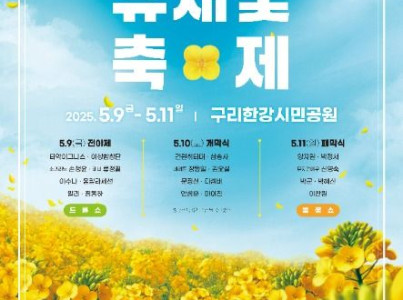구리 유채꽃 축제는 형형색색 봄의 정취가 가득한 한강변을 배경으로 펼쳐지는 수도권의 대표 봄꽃 축제이다. 유채꽃이 만발한 노란 물결 속에서 산책을 즐기며, 밤에는 감성적인 조명과 공연이 어우러진 특별한 야경을 만날 수 있다. 자연의 아름다움과 다양한 체험 프로그램, 풍성한 먹거리까지 준비되어있다.