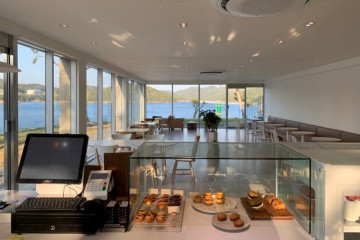 바다가 보이는 루프탑 카페쿠는 주차 걱정 없이 편하게 차를 가지고 올 수 있고 8인 이상 방문 시 프라이빗 룸 사용도 가능하다. 카페 내부는 깔끔하고 세련된 인테리어로 여러 종류의 식물들로 꾸며 놓아 앉아 있으면 절로 힐링되는 기분이다. 1층과 2층은 전체 통유리로 의자에 앉아 여유 있게 커피를 마시며 바다를 볼 수 있다. 또한, 루프탑이 있는 3층은 선베드와 포토존이 있어 방문객들이 가장 많이 찾는 곳이다. 카페 쿠의 시그니처 메뉴는 달콤한 라테에 설탕 코팅을 한 브륄레 쿠와 청포도 에이드에 보라색 블루 멜로 티 얼음으로 포인트를 준 상큼한 그레이프 멜로 에이드이다. 그 외에 다양한 커피 종류와 베이커리가 준비되어 메뉴 선택의 폭이 넓다.