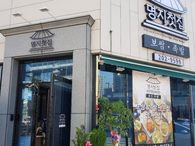 40년 경력의 2대를 이어온 명지첫집은 좋은 소금으로 만든 9가지 젓갈과 명지 대파로 맛을 더한 보쌈과 족발 요리를 선보이는 집이다. 수육과 갖가지 반찬이 된장찌개와 함께 나오는 보쌈정식이 대표 메뉴이며 점심 세트메뉴에는 기본 보쌈정식 메뉴에 고등어구이 또는 젓갈 9종 중 택일할 수 있다. 부산 명지는 예로부터 대파와 소금이 유명한 곳이라 명지의 질 좋은 소금으로 직접 담근 젓갈을 다양하게 제공하는 것이 특색 있으며 500g씩 포장하여 판매도 한다. 음식의 만듦새는 물론 담음새까지 하나하나 정성이 느껴지며 깔끔한 실내 인테리어에 프라이빗하게 구분된 공간이 마련되어 있어 손님들이 선호한다.