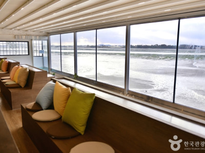 대부도 동춘서커스 건너편 회센터 안쪽으로 1분 거리에 있는 대부도 카페에바다는 겉으로는 상가 건물이 가리고 있지만 안쪽으로는 바로 바다가 펼쳐지는 뷰맛집 카페이다. 실내 인테리어도 직접, 로스팅도 직접, 커피콩빵도 직접 구워 판매하는 이곳은 구석구석 감성 돋는 인테리어뿐만 아니라 바로 카페테라스에서 서해안 낙조를 볼 수 있는 낙조 명소 카페이다. 테라스에서 일몰을 감상하는 사람들을 위해 포근한 담요들과 방석도 넉넉하게 준비되어 있으며 오션뷰와 함께 음료와 디저트까지 즐길 수 있다.