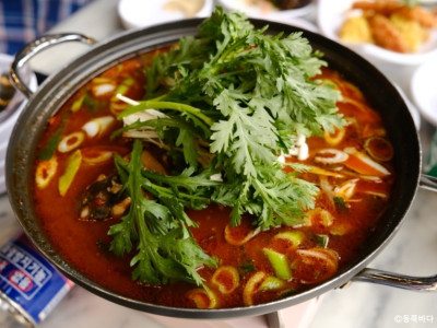 삼척 중앙시장에 위치한 국수 전문점이다. 식사 시간이 지났는데도 여전히 길게 줄을 서는 곳이다. 벽에는 엄청나게 많은 메모지가 각자의 사연을 품고 걸려 있다. 테이블에는 메모지와 볼펜이 있어 자신만의 사연을 남겨둘 수도 있다. 신다리의 대표 메뉴는 동치미국수와 열무국수이다. 살얼음이 내려앉은 동치미국수에는 콩가루가 뿌려져 있다. 비빔국수의 고명 위에도 콩가루가 올라간다. 새콤한 국물과 고소한 콩가루가 어우러져 독특한 맛을 낸다.