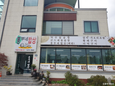 흥부네밥상은 강원도 양양에 있는 한식 전문점이다. 인제군 필례약수로 돌솥 밥을 지은 약수 돌솥 밥은 피부병, 위장병, 숙취 해소에 좋다고 한다. 강원도 곤드레나물을 넣어 지은 곤드레 돌솥 밥도 인기 메뉴이다. 돌솥 밥을 짓는 시간을 기다리기 어렵다면 공깃밥으로 상을 차리는 흥부네 밥상도 있다. 밥맛이 좋은 집으로 농협과 농민신문사에서 선정한 곳이다. 제철 생선구이, 불고기, 강원도 산채와 장아찌, 김치로 한 상을 제공한다. 곁들임으로 용대리 황태구이나 매콤한 더덕구이를 추가해 풍성하게 즐길 수도 있다. 주차는 매장 앞에 전용 주차장이 있어 이용이 편리하다. 올해부터 저녁 식사는 하지 않으니 방문할 때 영업시간과 영업 여부를 꼭 확인하고 가야 한다.
