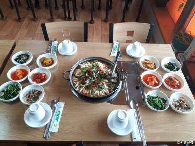 서원산장은 강원도 횡성군에 있는 두부 전문점이다. 모두부, 두부전골, 순두부, 돼지고기 짜글이 맛집이다. 조금만 늦게 가도 모두부는 맛볼 수 없다. 양념도 간단하게 새우와 바지락을 끓이는 전골인데 시원한 국물에 두부 맛이 고소하다. 어떤 음식을 시키든지 차려지는 밑반찬은 김치, 깍두기, 나물 3~4가지이다. 두부, 반찬도 모두 국내산 재료를 사용해서 주인이 직접 만드는 반찬들이다. 셀프바에 있는 음식을 추가로 먹을 수 있다. 돼지고기를 넣어 자글자글 끓여 먹는 짜글이도 맛이 좋아 인기가 좋다. 주변에 골프장이 많아 라운딩을 끝낸 골퍼들이나 지역 주민들이 많이 찾는 식당이다.