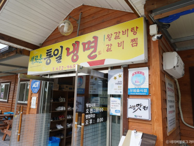 경상남도 고성군 회화면에 있는 새로운 통일냉면은 매일 새벽 판매될 재료를 직접 준비하고 만드는 냉면 전문점이다. 새로운 통일냉면의 외관은 고풍스러운 한옥으로 꾸며져 있고, 주차 공간은 넓게 마련되어 있어 주차 걱정이 없다. 또한 식당의 회전율이 높은 편이므로 오래 기다리지 않고 식사를 즐길 수 있다. 고성군 모범음식점인 이곳에서는 주문이 들어오면 바로 면을 삶아 손님에게 제공하며, 제철 재료로 직접 끓인 천연 육수를 사용해 맛있는 냉면을 제공한다. 육전이 들어간 비빔냉면은 양념이 듬뿍 들어가 맛이 조화롭고, 갈비탕에는 부드러운 갈빗살이 많이 붙어 있는 갈빗대가 3~4개 푸짐하게 들어 있다.