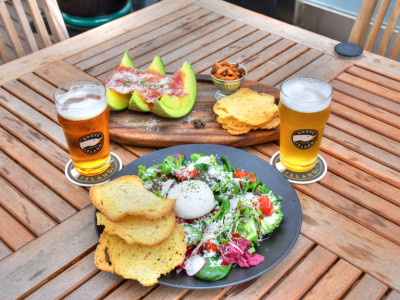 구스 아일랜드 브루하우스는 시카고 딥디쉬 피자와 오리지널 버팔로윙이 인기 메뉴인 브루하우스이다. 피자는 치즈가 가득하고 두꺼운 정통 시카고 스타일이며, BBQ 랜치 치킨 샐러드는 수비드 닭가슴살과 신선한 채소가 조화롭게 어우러져 건강한 맛을 제공한다.
