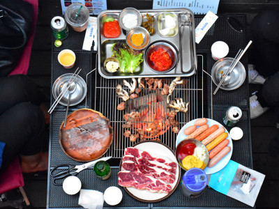 베이스캠프 홍대본점은 캠핑 분위기를 느낄 수 있는 고기 전문점이다. 이곳은 정원이 있는 2층 가정집을 개조했다. 넓은 정원 여기저기에는 나무를 심었고, 나무 사이에는 해먹이 걸려있다. 자그마한 풀장도 있어 물가에 앉아 캠핑 분위기에 빠질 수 있다. 목살과 삼겹살은 숯불에 구워져 육즙이 풍부하고, 매콤한 양념이 된 껍데기는 쫀득한 식감이 매력적이다.
