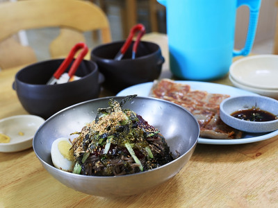 신천일막국수는 38년 역사를 자랑하는 화천의 막국수 맛집이다. 이 집의 막국수는 물과 비빔을 구분하지 않는 스타일로, 원하는 만큼 육수를 부어 먹으면 된다. 수육은 부추무침이 곁들여서 나오는데, 이 부추무침이 야들야들한 수육에 잘 어울린다. 빈대떡은 두툼하고 바삭 쫄깃한 식감으로 추가 주문을 부른다. 매장에서 판매하는 화천 막걸리도 기회가 된다면 맛보아야 한다. 수육이나 빈대떡에 함께 먹기 좋다. 평소에는 가게 앞과 부근에 주차하면 되는데 화천시장의 오일장 날은 주차가 어렵다.