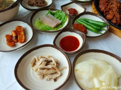 시골마당은 전라도 한정식 백반 맛집이다. 남도식 한정식에 연탄불에 구운 돼지불고기와 조기구이를 중심으로 푸짐하게 한상 가득 차려 나오는 단일 메뉴이다. 깨끗한 건물 외관과 넓은 주차장이 있어 편리하고 실내엔 잘 정돈된 입식 테이블이 있어 깔끔하다. 시골마당 정식은 15가지가 넘는 반찬들과 연탄 돼지불고기, 조기구이, 양념 꽃게, 홍어 등 보기만 해도 맛깔스러운 음식들이 쌈 채소와 함께 나온다.