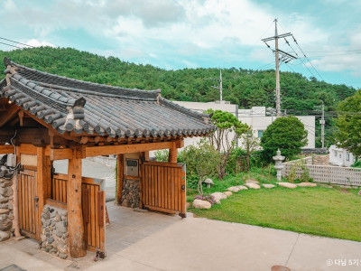부산 기장군에 자리한 고즈넉한 분위기의 한옥 카페다. 짙푸른 산으로 둘러싸여 더욱 운치가 느껴지는 이곳은 한옥 특유의 우아함과 서정적인 풍광이 매력이다. 기와지붕을 얹은 대문을 들어서면 작은 연못과 징검다리, 정자를 떠올리게 하는 별채가 그림처럼 펼쳐진다. 대청마루를 활용한 널찍한 테라스도 부드러운 바람을 즐기기 좋다.