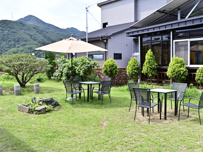 재미있는 이름의 그린프로그는 이병철 생가를 방문하고 차를 한잔하거나 편안하게 쉴 만한 곳을 찾는다면 추천하고 싶은 곳이다. 탁 트인 실내는 다양한 스타일의 테이블과 의자가 있어서 취향에 맞게 골라 앉으면 된다. 특히 캠핑장의 분위기를 재연한 듯한 테이블은 요즈음 트렌드와 맞아서 인기가 좋다. 건물 뒤편의 야외 잔디밭은 아이들이 뛰어놀거나 사진을 찍기에 좋다. 메뉴는 사진을 일일이 다 찍어서 한눈에 보기 쉽게 걸어 두고 있어서 주문하기가 편리하다. 각종 라테와 수제와플이 인기가 있고 멜론이나 딸기 등 제철 과일로 만든 빙수의 인기가 좋다.
