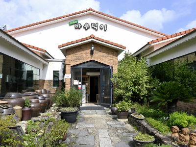 지리산바우덕이 식당은 지리산 중산리나 거림골에 가는 길목인 시천면 소재지에 있다. 바로 인근에 남명 조식 선생의 학덕을 추모하기 위해 건립된 덕천서원이 있어서 같이 방문하면 좋다. 식당은 넓은 정원에 스페인식의 잘 지어진 큰 건물에 실내는 마치 카페처럼 꾸며졌다. 이탈리아 음식을 팔아야 할 것 같은데 음식은 토속적이다. 가마솥밥이 포함된 정식이 기본 메뉴이다. 나물 밑반찬에 샐러드, 야채전, 생선구이, 고추장불고기, 청국장 등이 나온다. 젓가락이 가지 않는 반찬이 없을 정도로 골고루 맛이 있다. 마무리는 숭늉이 기다리고 있다. 한 상 잘 먹은 느낌이다.