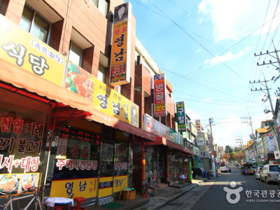 영남식당은 직접 농사지은 농산물과 직접 담근 재래식 고추장, 된장, 간장으로 어머니의 손맛을 느낄 수 있는 식당이다. 고수동굴 후문으로 나오면 가장 먼저 만날 수 있으며, 35년 간 지금의 자리를 지킨 전통 있는 맛집이다. 대표적인 메뉴로 수제마늘떡갈비와 쏘가리매운탕이 있으며, 산채비빔밥, 올갱이해장국, 감자전, 도토리묵 등도 맛볼 수 있다.